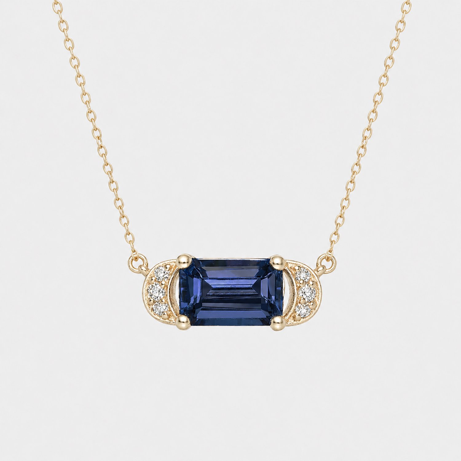 Blue Sapphire Crescent Necklace