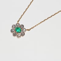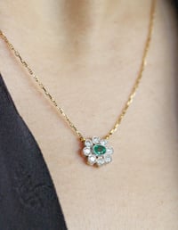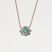 A radiant emerald takes center stage, encircled by a halo of sparkling diamonds totaling 0.4 carats. Set in timeless elegance, this necklace evokes the romance of the Victorian era—an heirloom in the making, bold yet graceful.