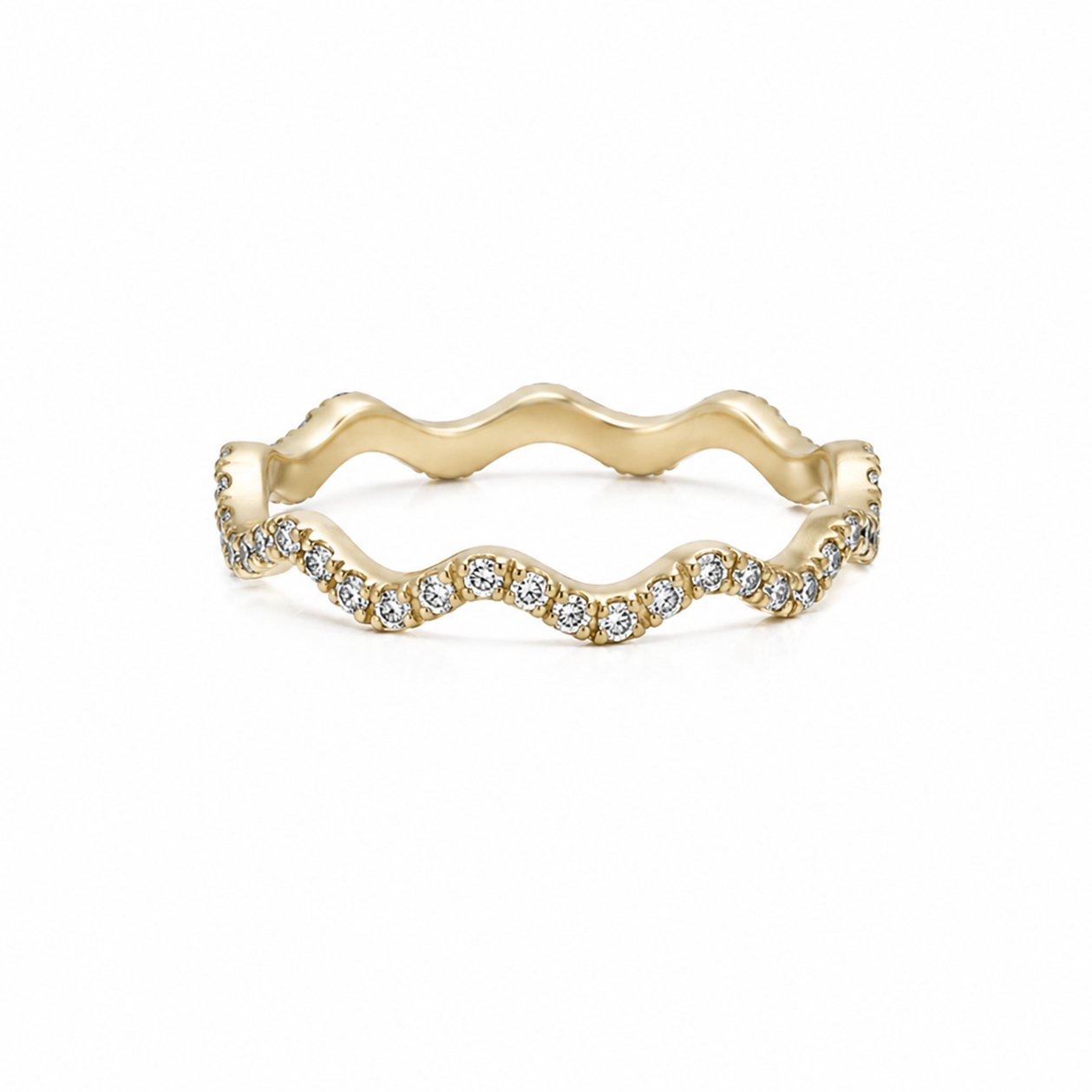 A graceful wave of pavé-set diamonds flows effortlessly around this band, catching the light like whispers of the sea. Sleek and shimmering, it’s a timeless expression of movement, sparkle, and understated elegance.