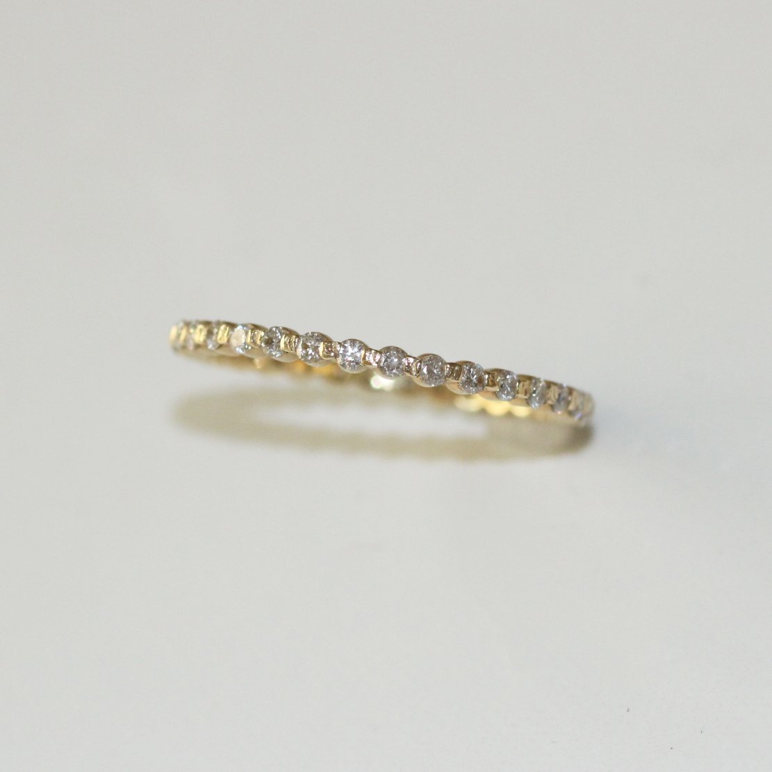 A ring of quiet light, crafted in a sustainable choice of diamonds. It slips effortlessly between gemstone treasures and simple bands, adding a whisper of brilliance. Delicate in form yet certain in presence — an essential you’ll return to every day.