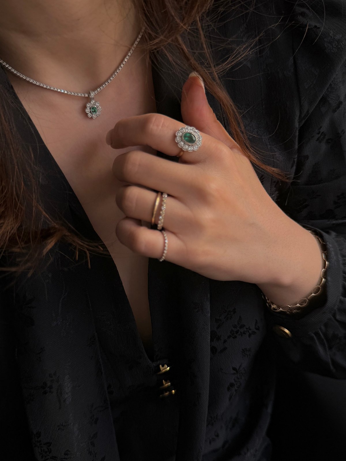 A delicate thread tennis necklace crafted in 14k white gold, featuring sparkling lab-grown white diamonds. This versatile piece offers fabulous sparkle and can be effortlessly layered with your favorite necklaces. For a touch of color, add our halo emerald pendant.