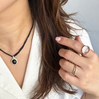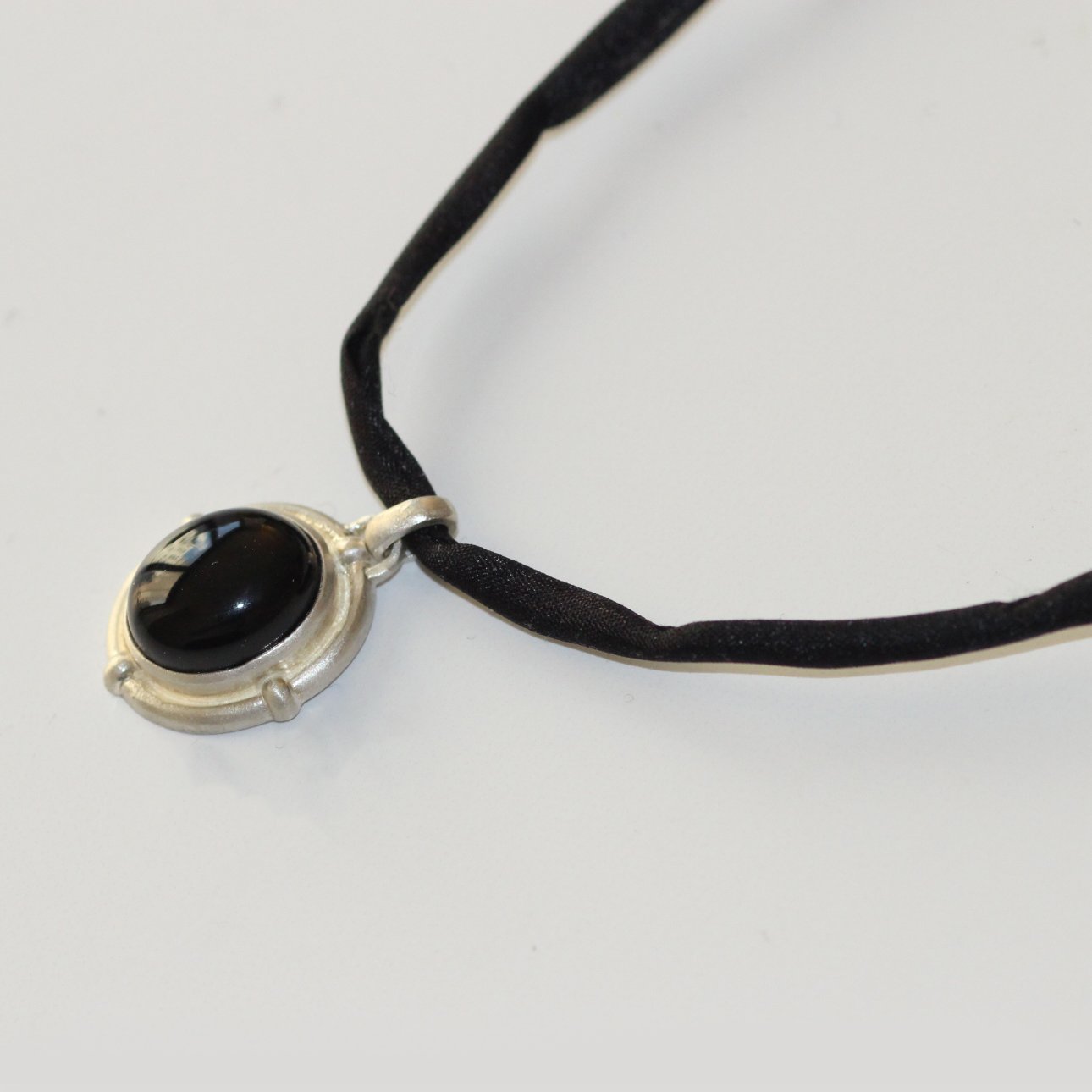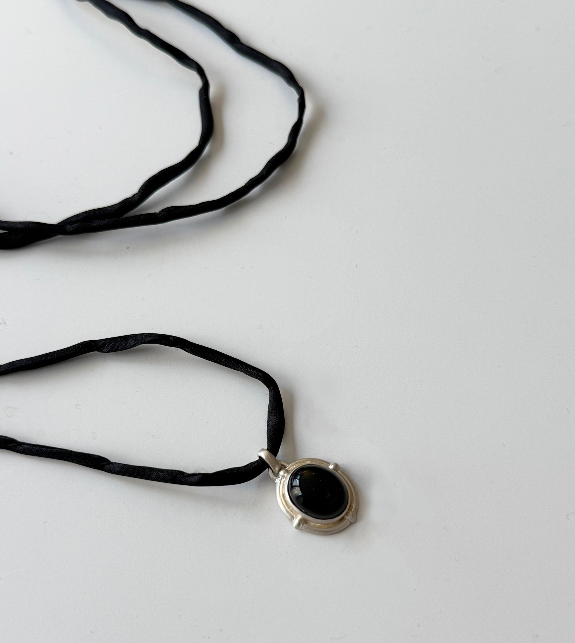 Pure silver meets deep black onyx, strung on a hand-dyed silk cord. Wear it your way—wrapped close as a choker or draped long as a necklace. A balance of simplicity and statement, this piece moves with ease—versatile, understated, and effortlessly chic.