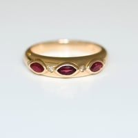 Softly aglow with marquise ruby cabochons and champagne diamonds, this ring captures the warmth of everlasting love — a timeless piece where passion meets grace.